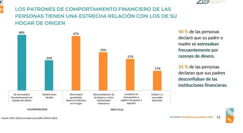La probabilidad de inclusión financiera es 7 veces mayor cuando la persona nació en un hogar con productos financieros, dijo la especialista del CEEY, Ana Laura Martínez Gutiérrez.