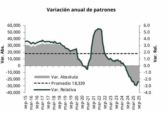 Al cierre de Septiembre se tienen inscritos un millón 039 mil 227 registros patronales, una tasa de variación anual negativa de 2.4 por ciento por ciento, lo que se debe principalmente por la implementación de medidas de seguridad en la apertura de registros patronales de personas físicas.